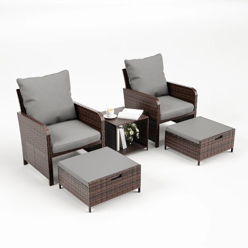 ELPOSUN 5 Piece Patio Furniture Set, Outdoor Patio Conversation Rattan Chair with Ottomans w/Storage Coffee Table for Patio, Space Saving Design for B