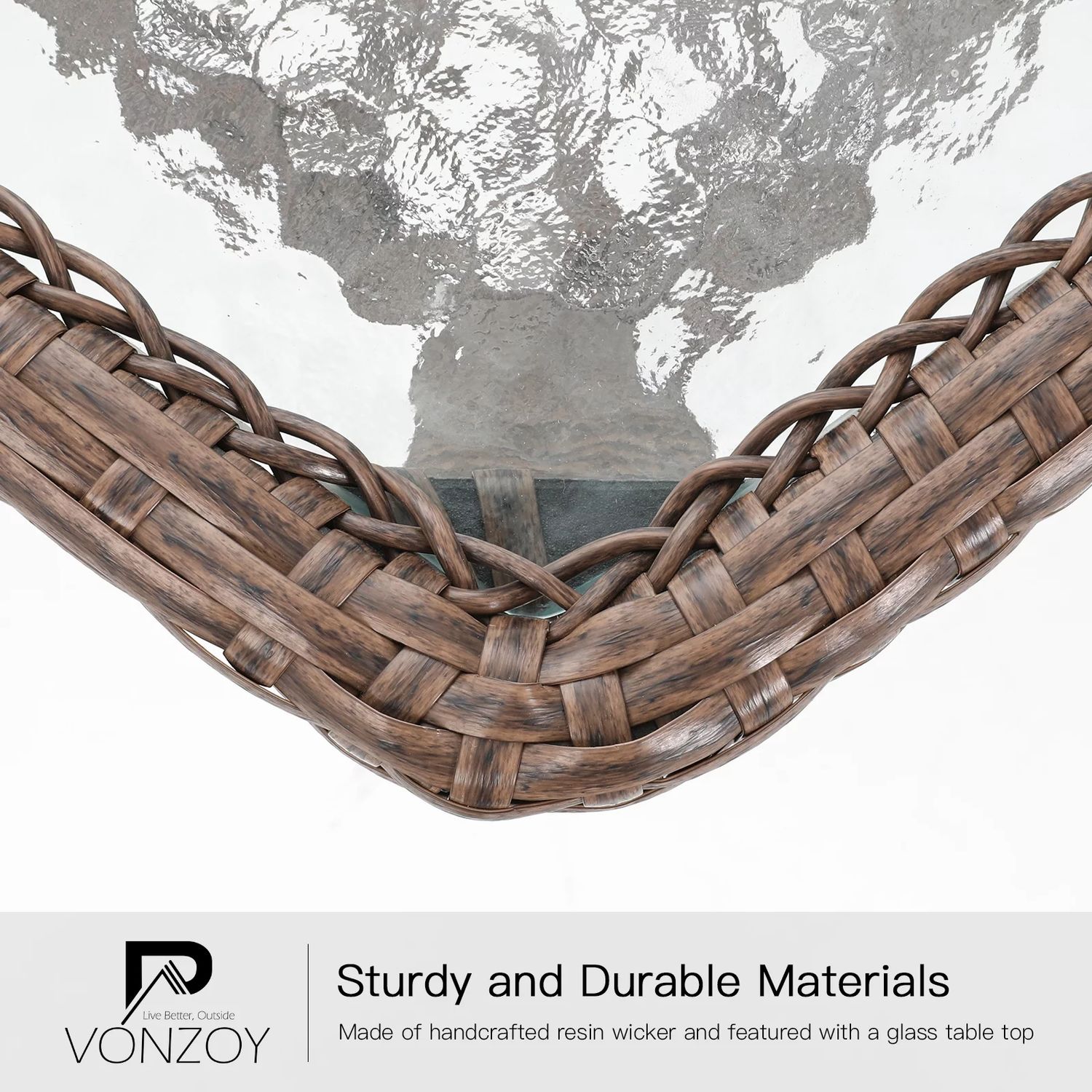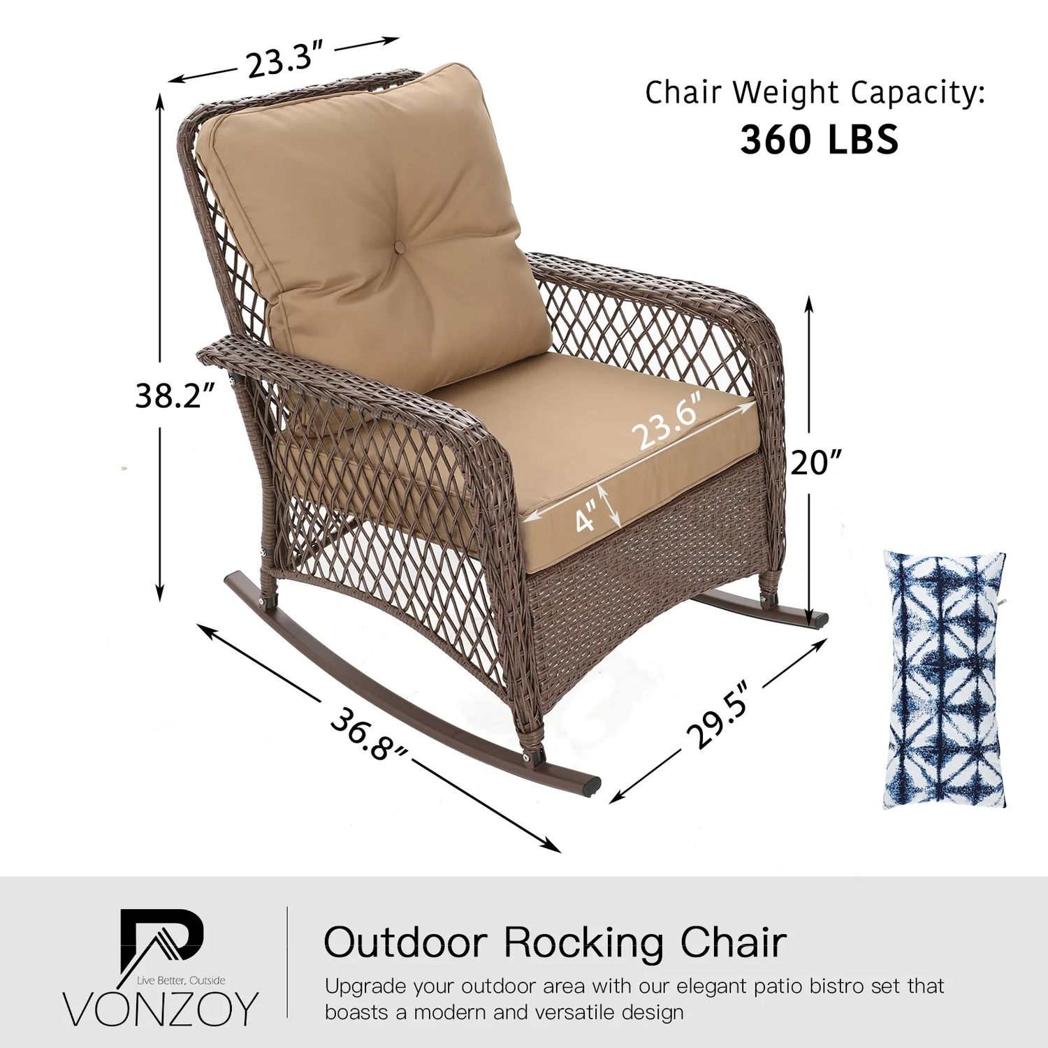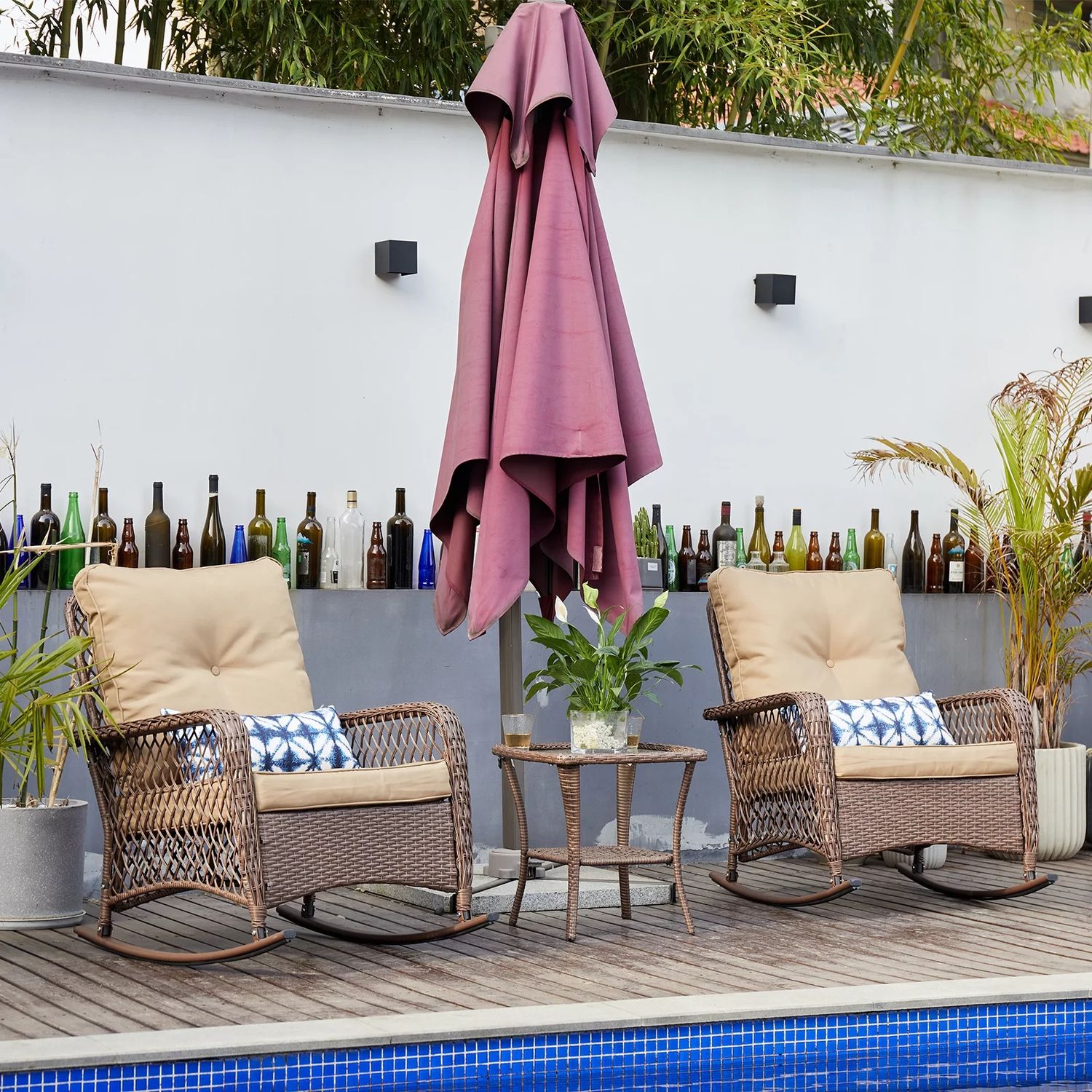 ELPOSUN 3-Piece Outdoor Rocking Chairs, Wicker Patio Furniture with Thickened Cushions and Table for Porch