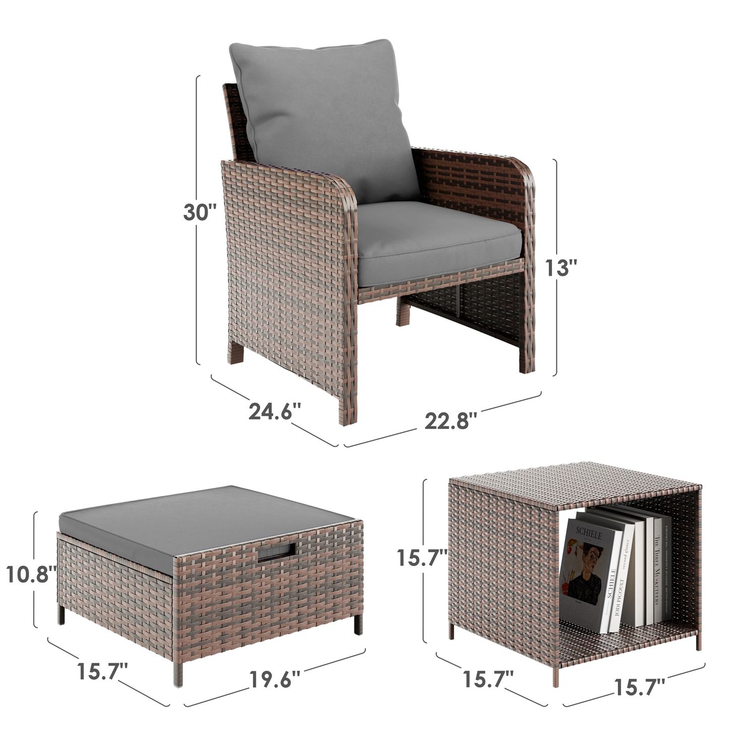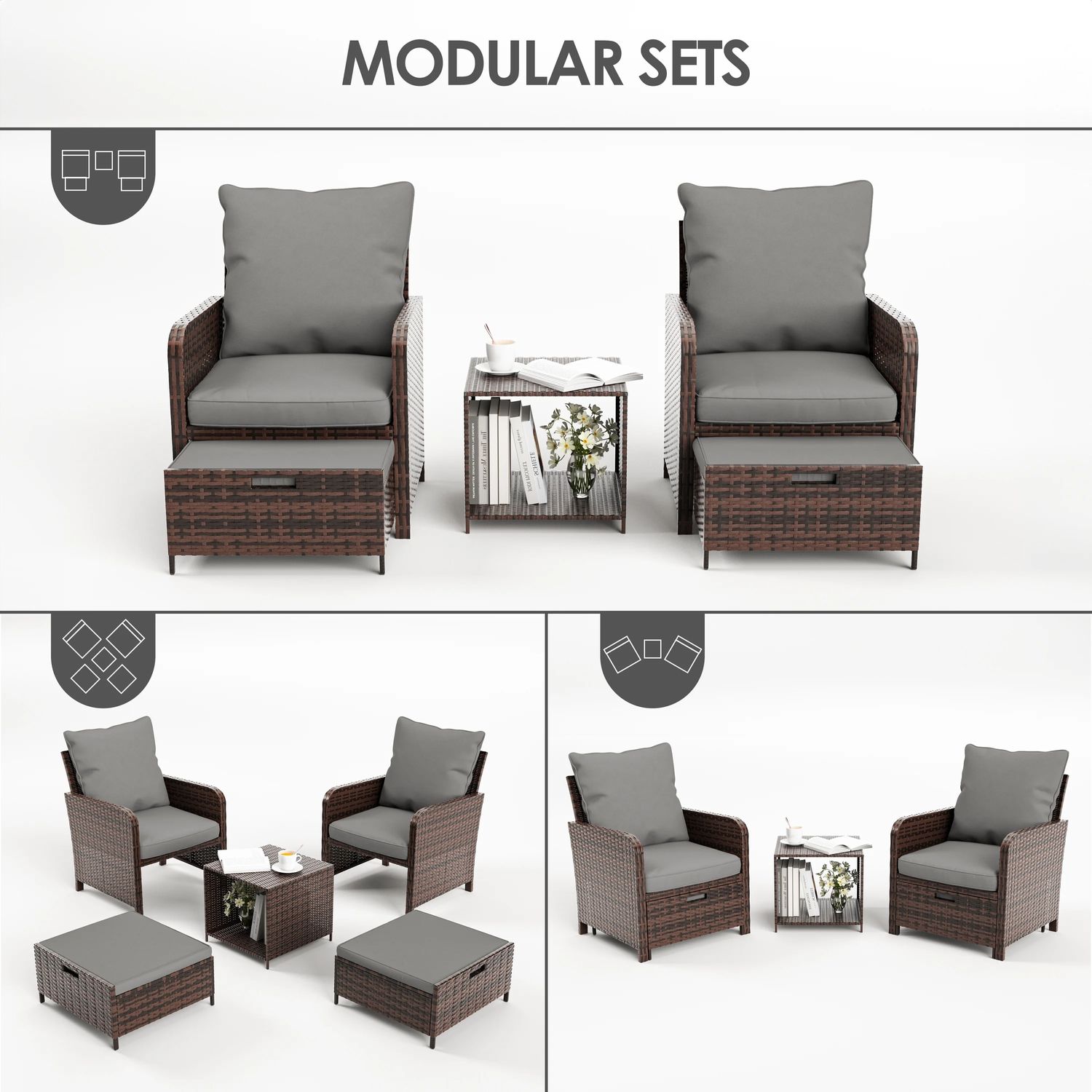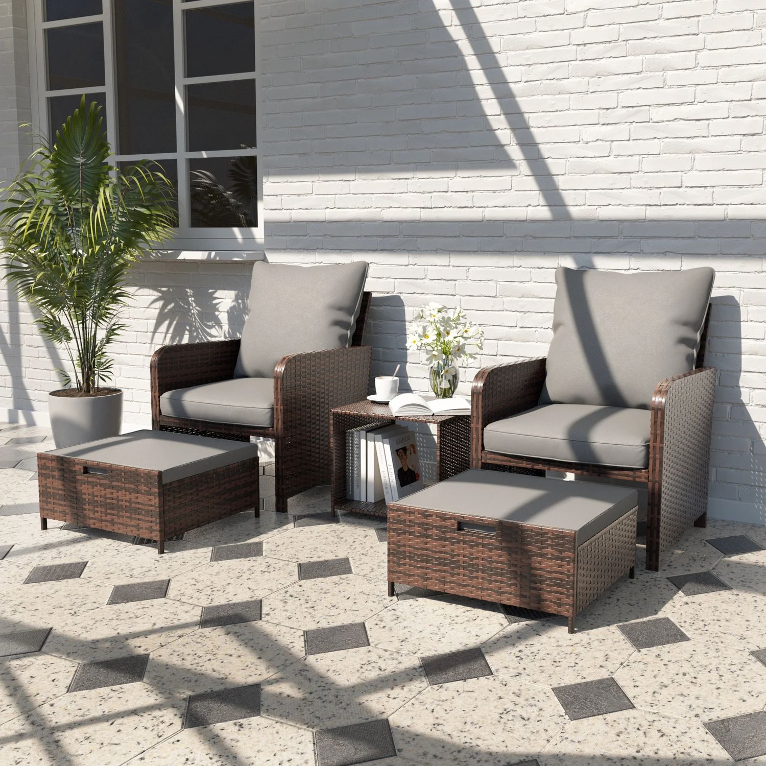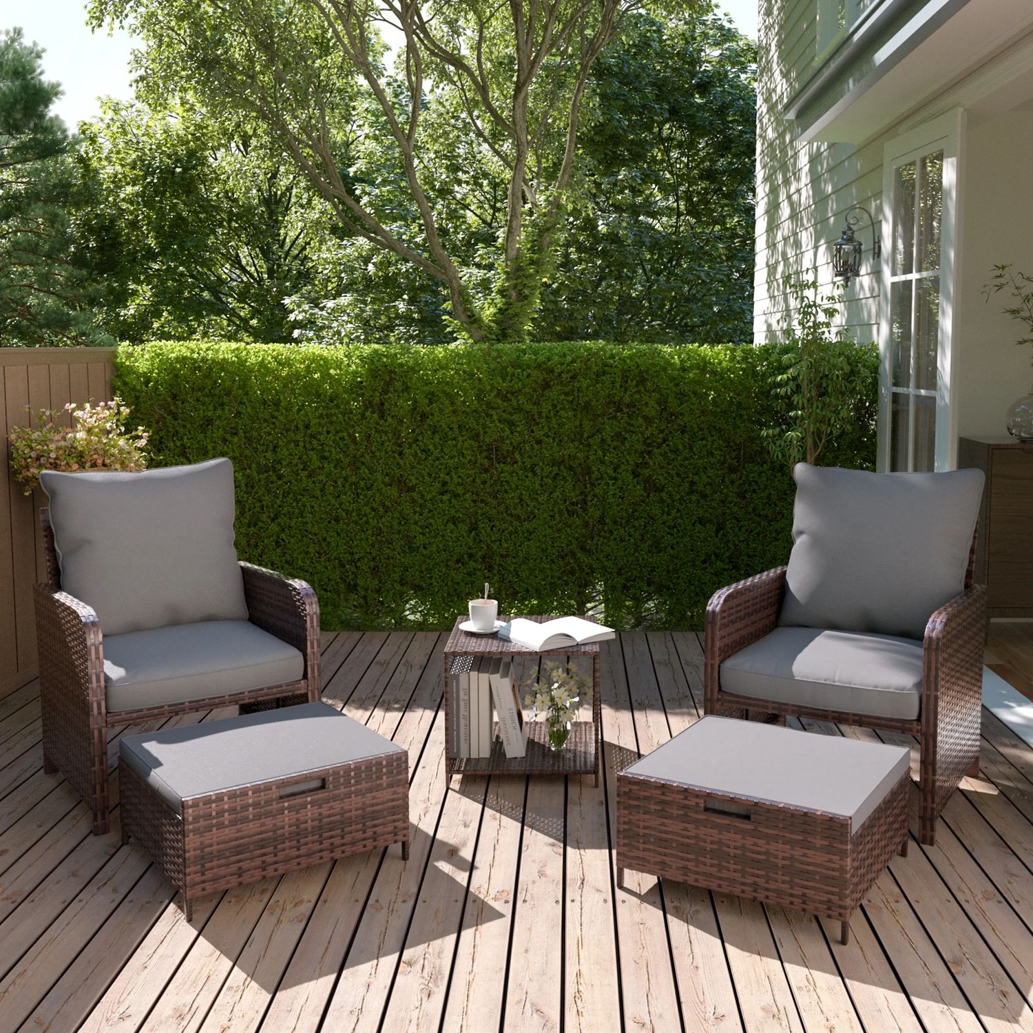ELPOSUN 5 Piece Patio Furniture Set, Outdoor Patio Conversation Rattan Chair with Ottomans w/Storage Coffee Table for Patio, Space Saving Design for B