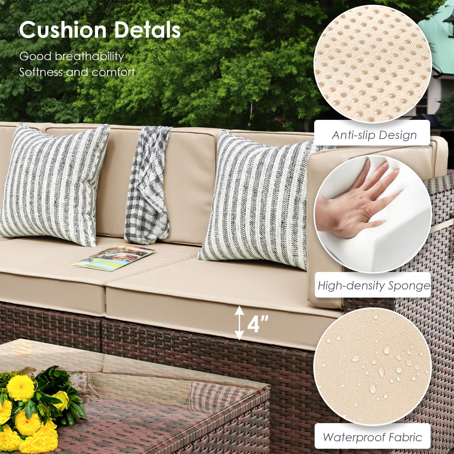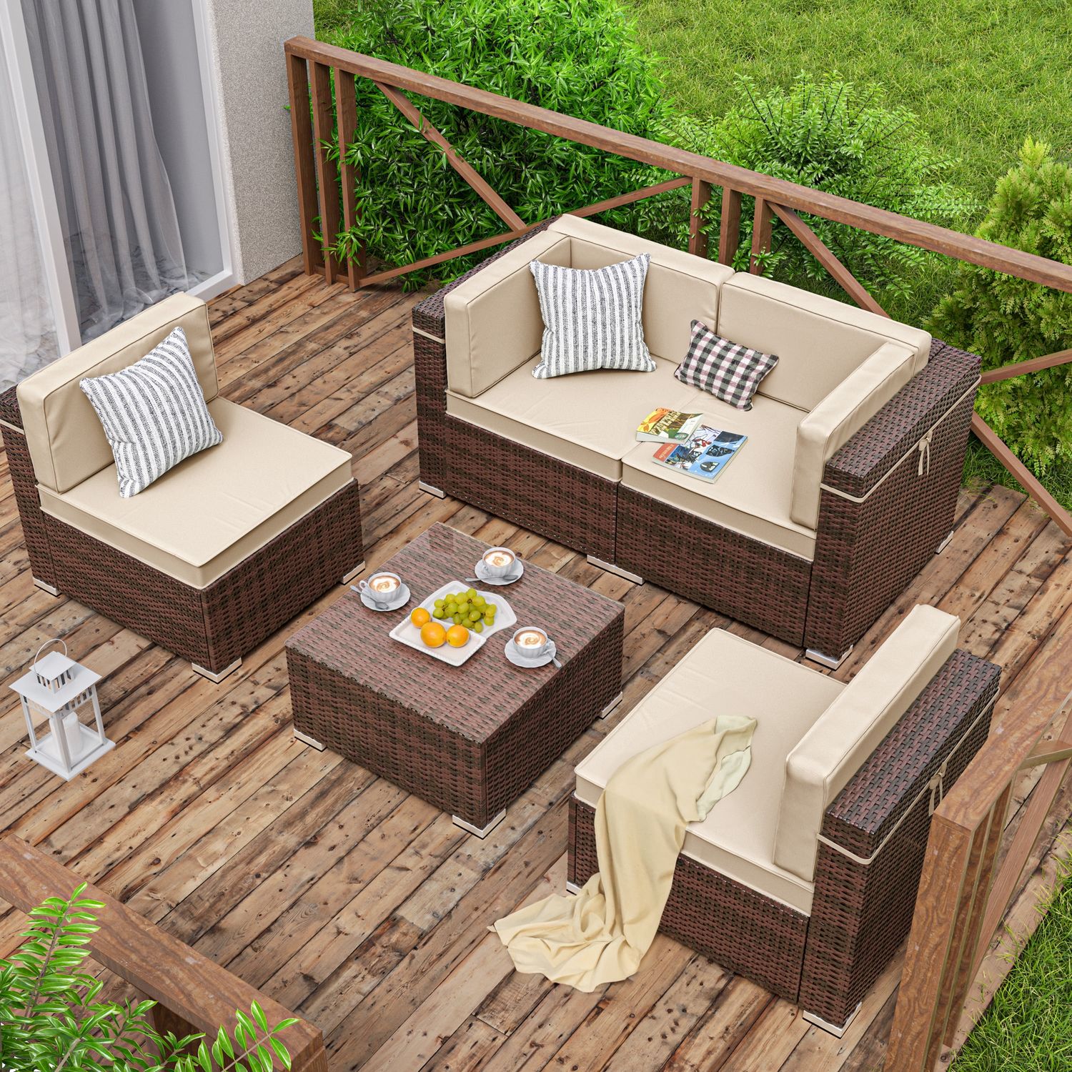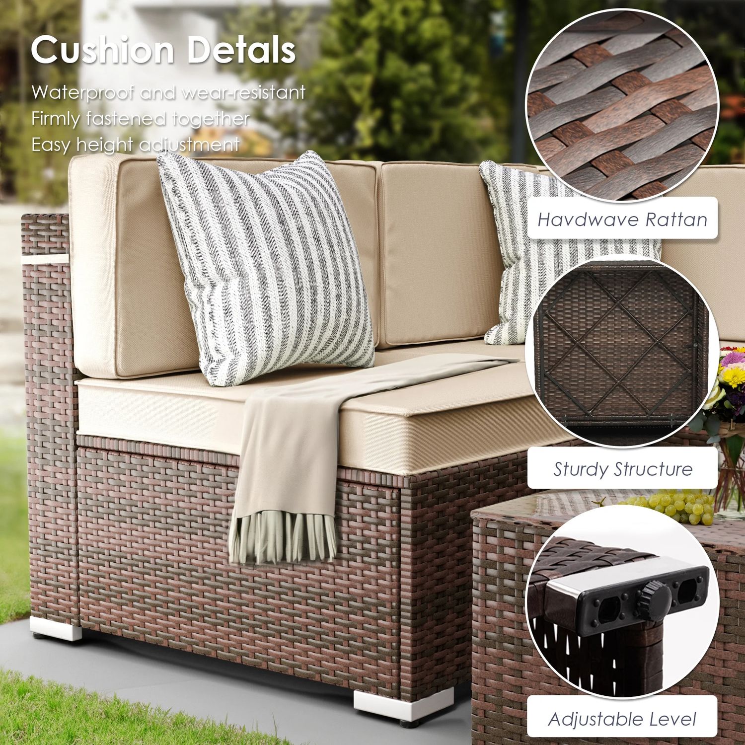 ELPOSUN 7 Pieces Patio Furniture Set All Weather Outdoor Sectional Sofa, Outdoor Modern Sectional Furniture Wicker Couch with Glass Coffee Table