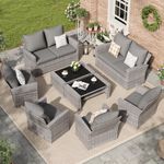 ELPOSUN 8 Piece Outdoor Sectional Conversation Sets , Wicker Patio Furniture Set��Gray PE Rattan Patio Sofa Set for Balcony, Porch, Backyard, Grey