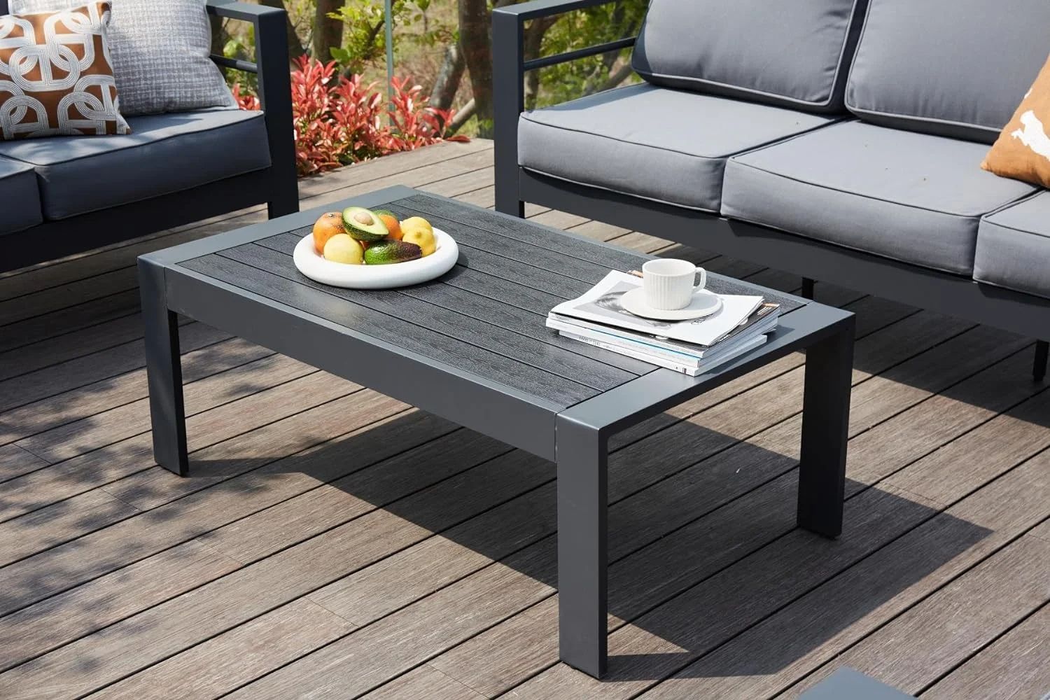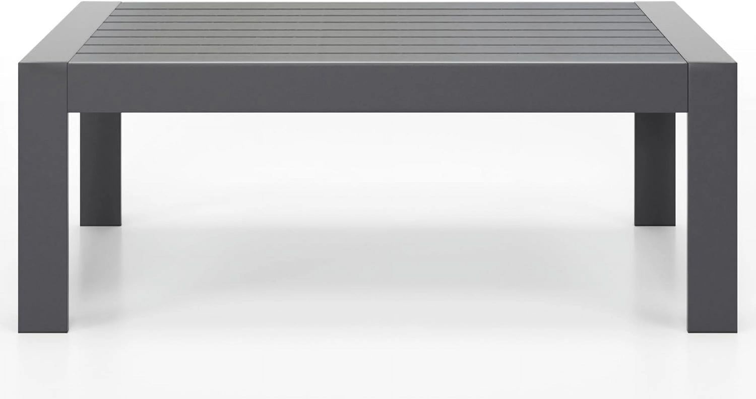 ELPOSUN Outdoor Coffee Table, Aluminum Modern Patio Coffee Tables with Imitation Wood Top for Balcony Garden Backyard, Dark Grey