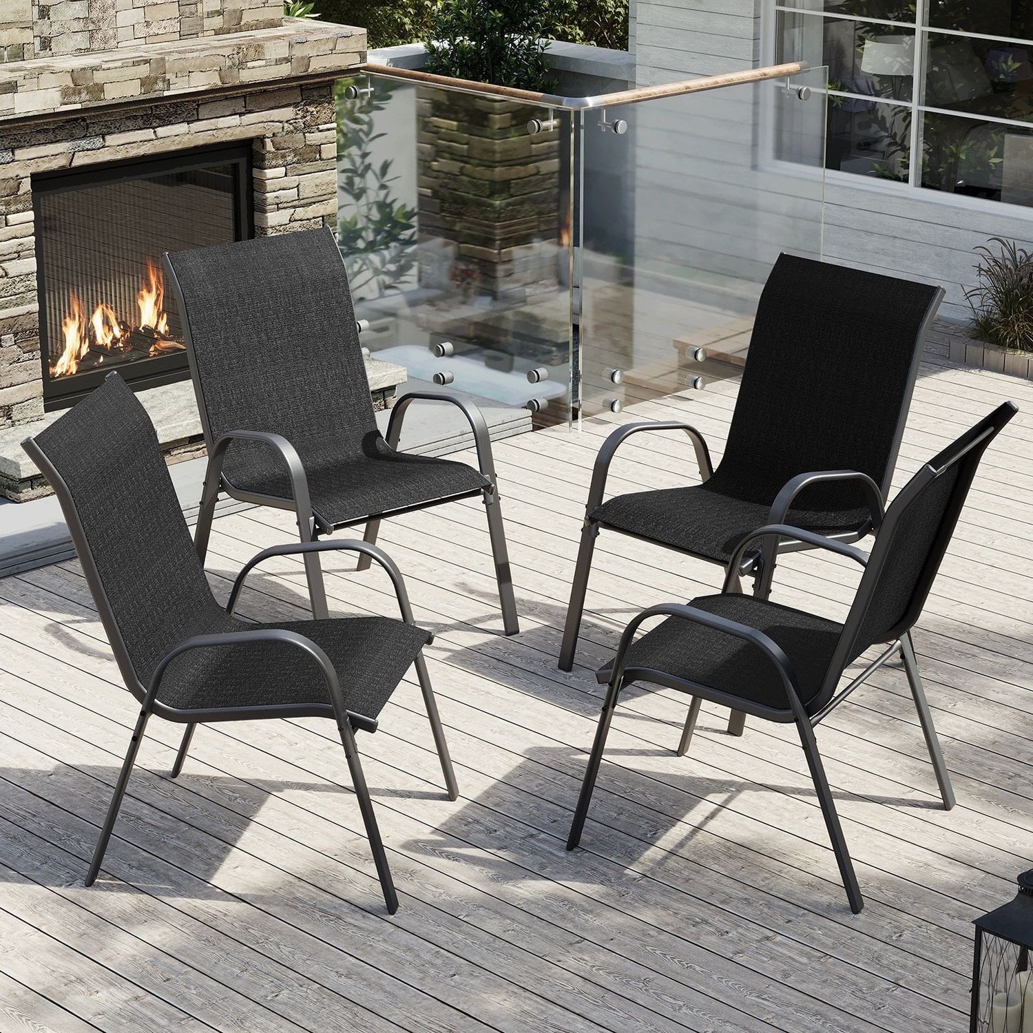ELPOSUN Patio Chairs Set of 4, Outdoor Stackable Dining Chairs for All Weather, Breathable Garden Outdoor Furniture for Backyard Deck, Black