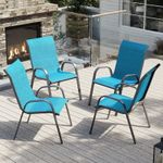 ELPOSUN Patio Chairs Set of 4, Outdoor Stackable Dining Chairs for All Weather, Breathable Garden Outdoor Furniture for Backyard Deck, Sky blue