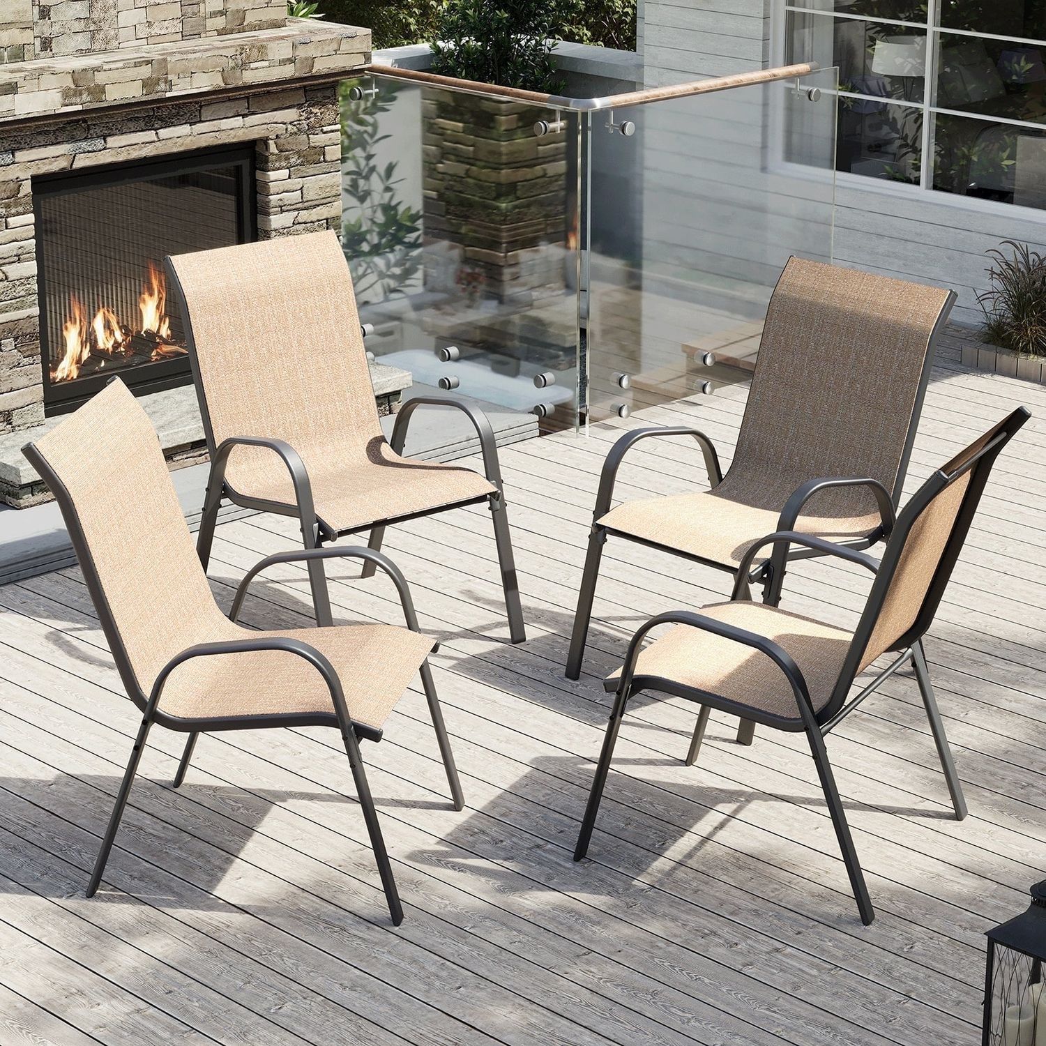 ELPOSUN Patio Chairs Set of 4, Outdoor Stackable Dining Chairs for All Weather, Breathable Garden Outdoor Furniture for Backyard Deck,Khaki