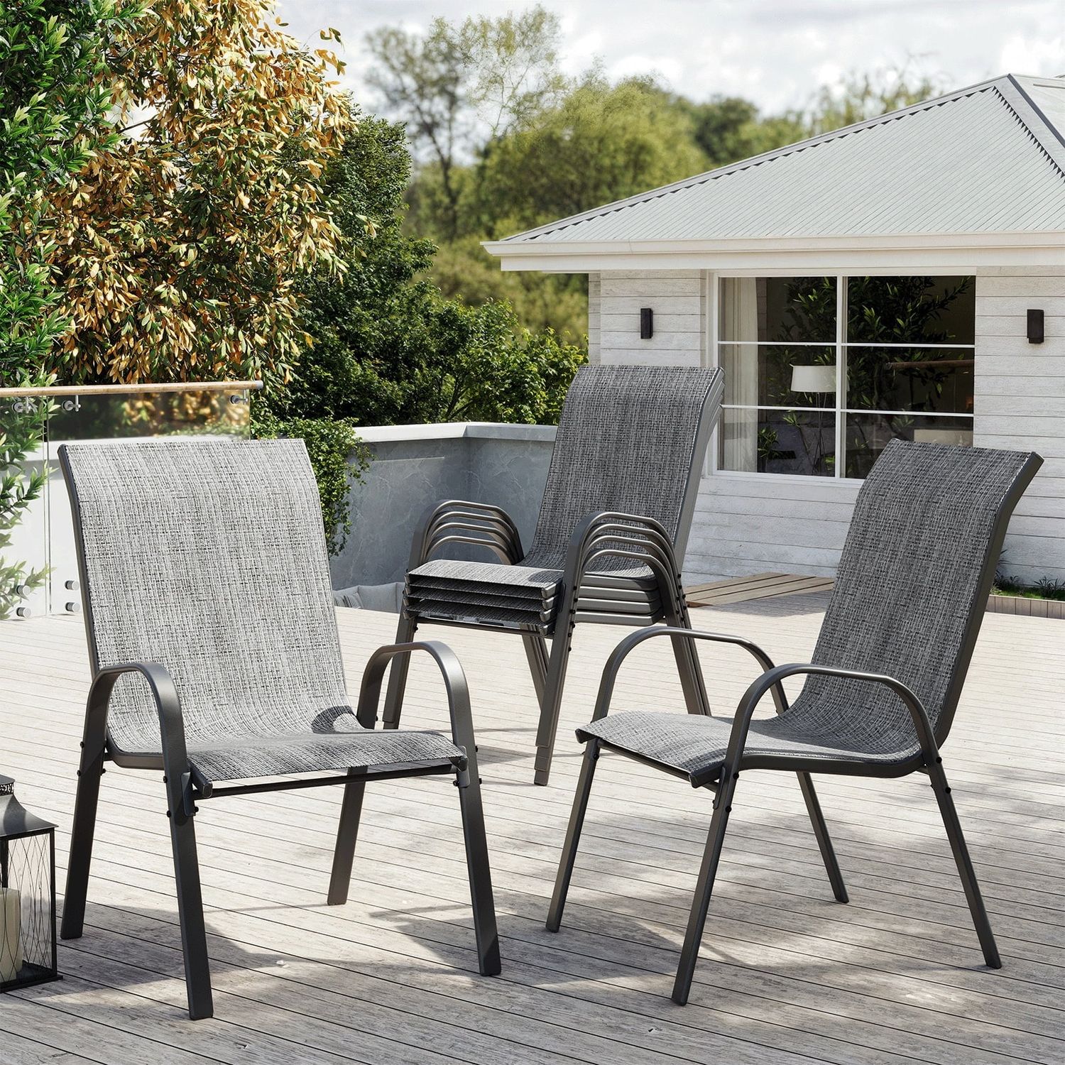 ELPOSUN Patio Chairs Set of 6, Outdoor Stackable Dining Chairs for All Weather, Breathable Garden Outdoor Furniture for Backyard Deck, Light Grey
