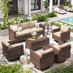 ELPOSUN Patio Furniture 10 Pieces Wicker Outdoor Sectional Sofa Sets, Rattan Conversation Set with Storage Table, Swivel Chairs for Backyard, Pool, Be