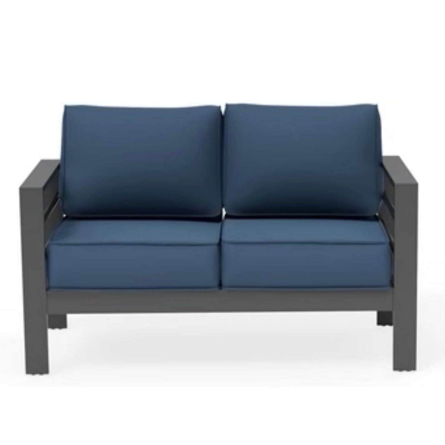 ELPOSUN Patio Furniture Aluminum Loveseat, All-Weather Outdoor 2 Seats Sofa Couch, Modern Metal Chair w/ 5 Inch Cushions, White and Light Grey (Includ