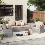 ELPOSUN Wicker Patio Furniture Set, 5 Piece Outdoor Sectional Conversation Sets, Gray PE Rattan Patio Sofa Set for Balcony, Porch, Backyard, Beige